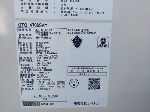 ノーリツ 石油給湯器